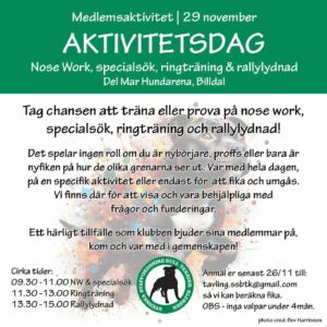 Inbjudan träningshelg i lydnad för Jenny Wibäck 4-5 okt